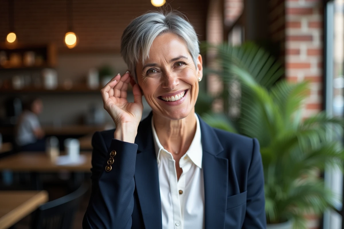 Opter pour le gris naturel déclenche souvent une envie de renouveau. Les coupes courtes offrent l’occasion de s’essayer à un dégradé graphique, d’introduire une frange subtile ou d’oser des contrastes. Certaines femmes se laissent tenter par une coupe garçonne, d’autres misent sur un carré court revisité à leur façon. Les reflets argentés et blancs prennent alors une nouvelle dimension, illuminant le teint, redessinant la silhouette.