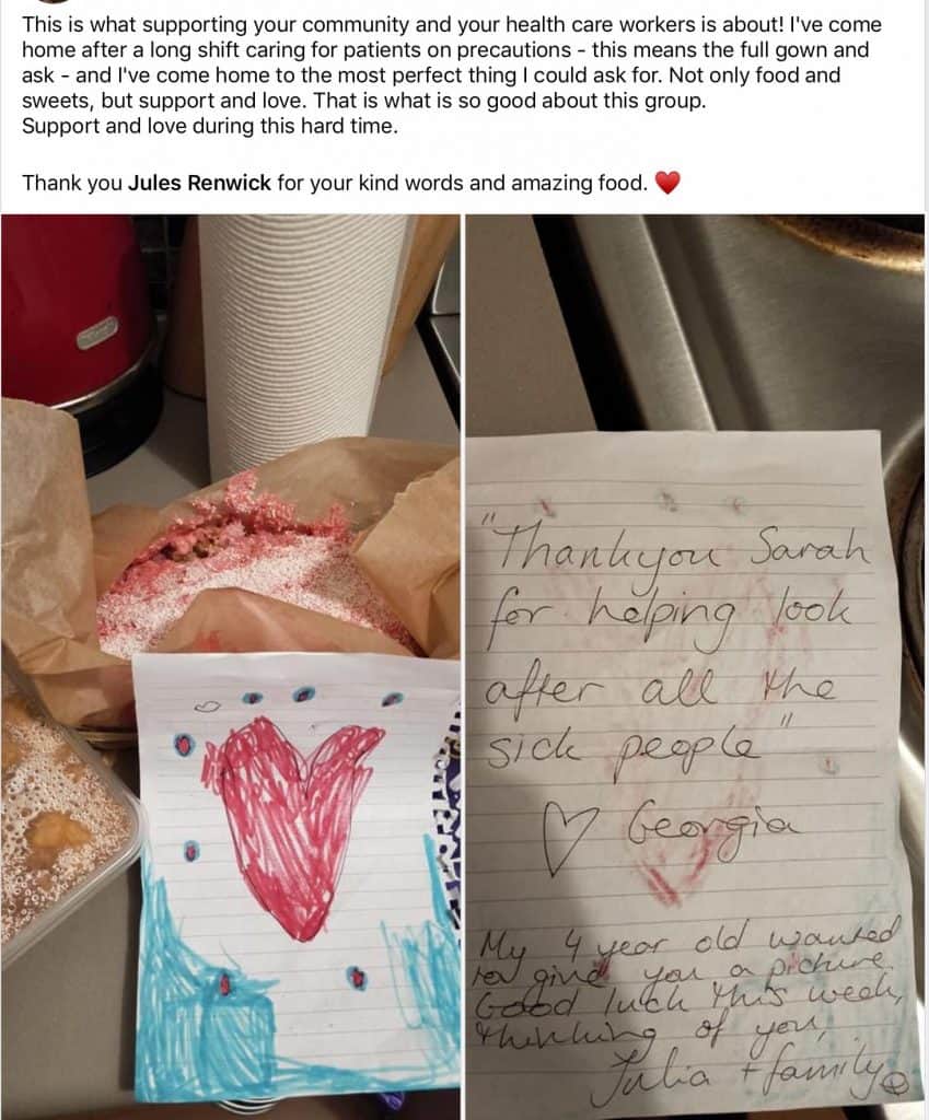 « Les adoptions qui ont eu lieu se sont révélées incroyablement efficaces. Certains soignants rentrent chez eux pour découvrir sur le pas de leur porte un colis de réconfort, un bouquet, le petit-déjeuner ou leurs repas du jour déjà livrés. »